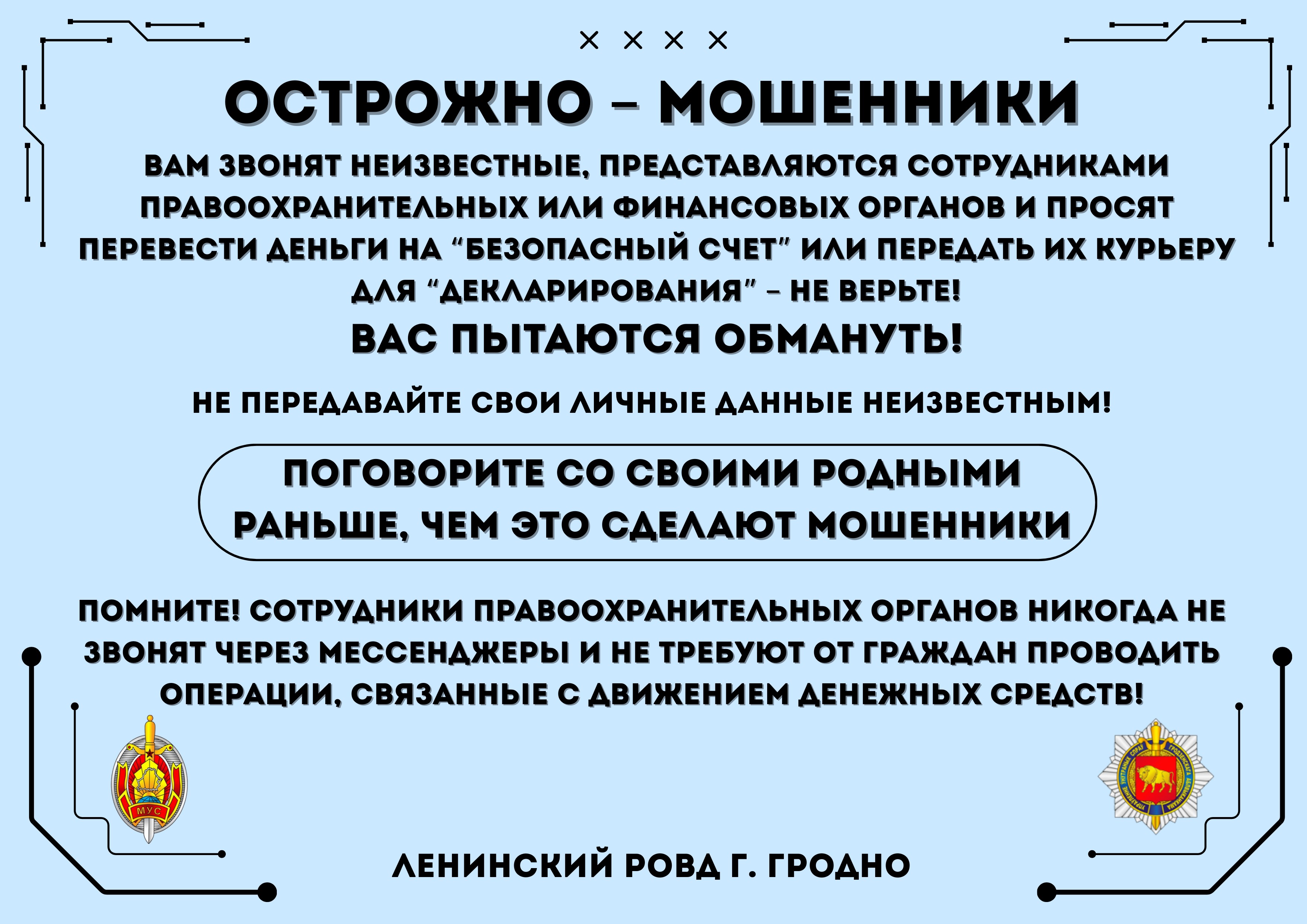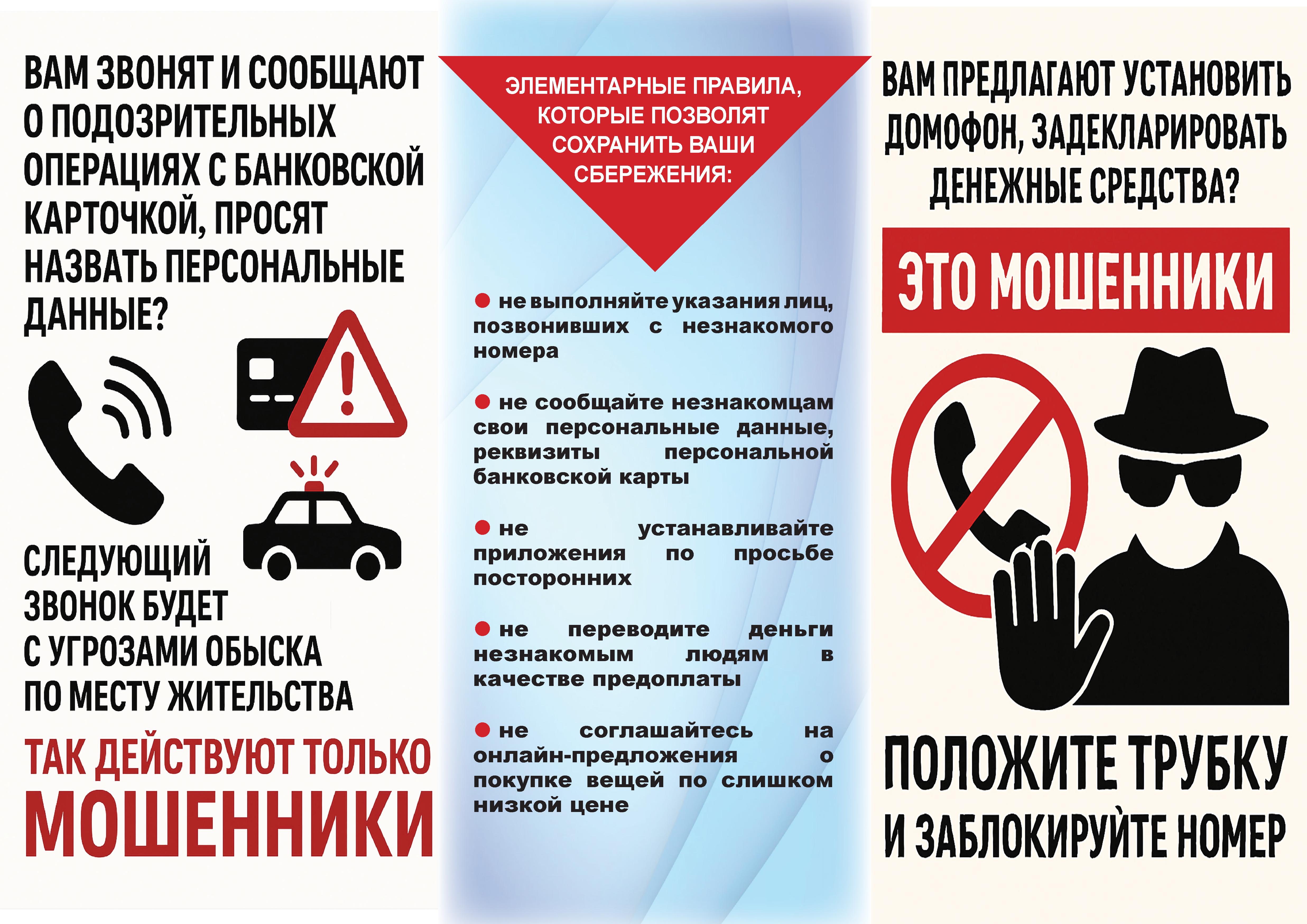 – ВАМ ЗВОНЯТ НЕИЗВЕСТНЫЕ, ПРЕДСТАВЛЯЮТСЯ СОТРУДНИКАМИ ФИНАНСОВЫХ ИЛИ ПРАВООХРАНИТЕЛЬНЫХ ОРГАНОВ И ПРОСЯТ ПЕРЕВЕСТИ ДЕНЬГИ НА «БЕЗОПАСНЫЙ СЧЕТ» ДЛЯ «ДЕКЛАРИРОВАНИЯ» – НЕ ВЕРЬТЕ! ВАС ПЫТАЮТСЯ ОБМАНУТЬ.